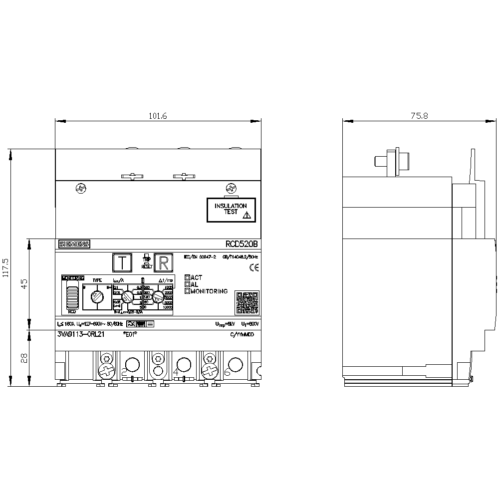 Kaçak Akım Koruma Cihazı, RCD520B Basic RCD Tip B Veya B+, Alt Tarafa Takılmış