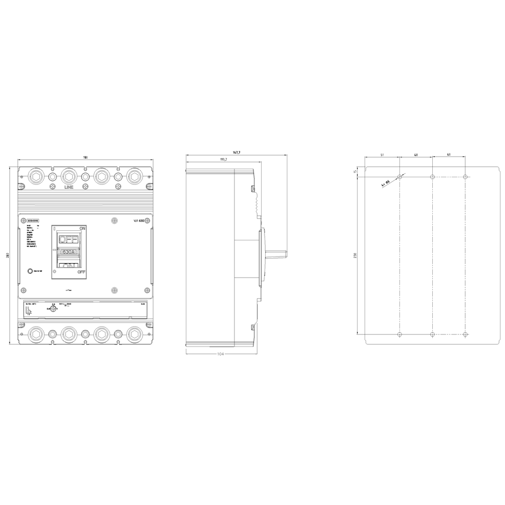 Devre Kesici 3VJ1 IEC Ebat 3VJ14 630 A Hat Koruyucusu ATFM, 4 Kutuplu