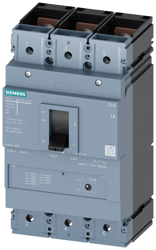 Devre Kesici 3VM1 IEC Frame 630 Anahtarlama Kapasitesi Sınıfı M 415V'ta Icu=5...
