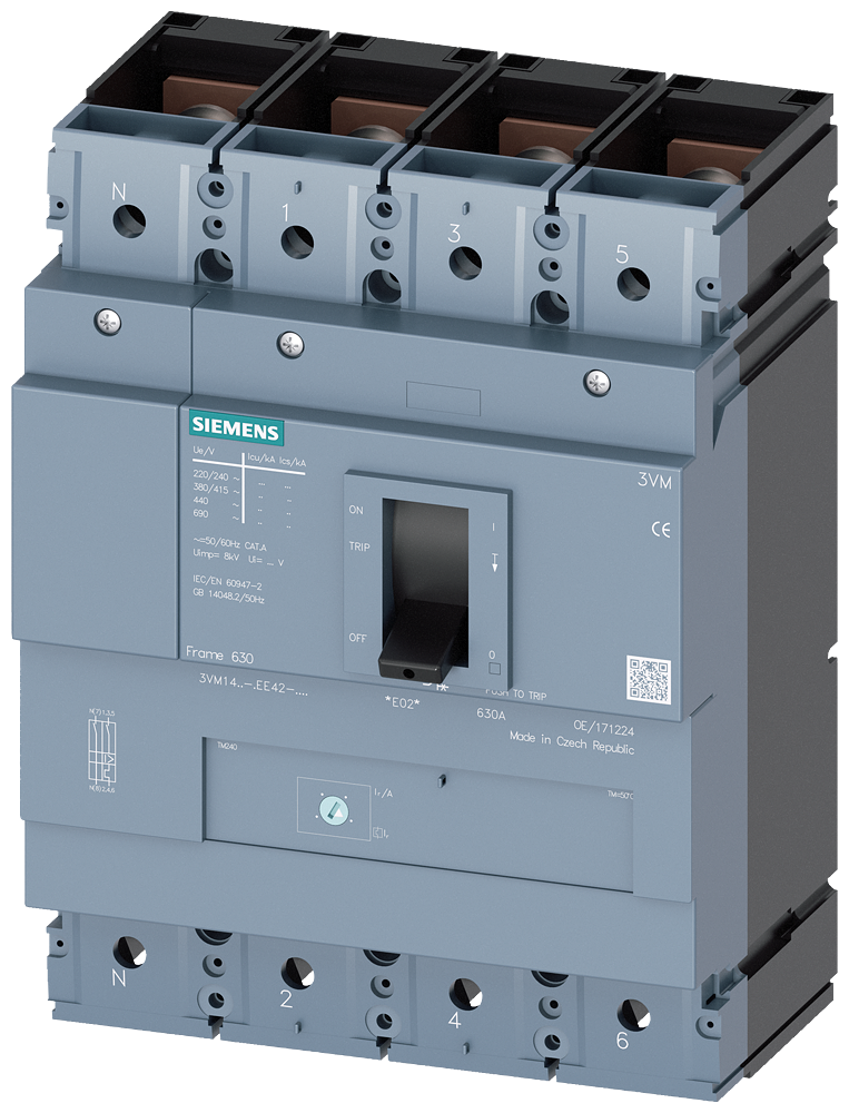 Devre Kesici 3VM1 IEC Frame 630 Anahtarlama Kapasitesi Sınıfı N 415V'ta Icu=3...