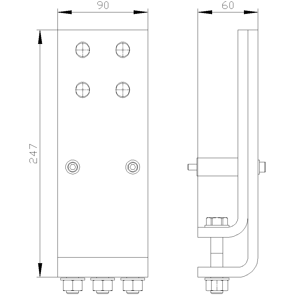 Ön Bağlantı DIN 43673 Çift Delik, Üst, Ebat 2 İçin 1 Adet